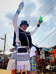 When the royal procession begins, the atmosphere becomes electric. Chiefs dressed in elaborate traditional regalia, coral beads, and embroidered robes assemble before the palace.
